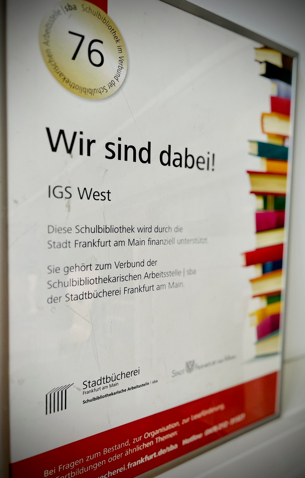 Die IGS-West besitzt, wie viele Schulen eine Bibliothek. In unserem Fall, wurde sie nicht Bibliothek genannt, sondern Mediathek. Hier stehen nicht nur Bücher, sondern auch Filme, Spiele, Computer, etc. In der Mediathek gelten die gleiche Regeln wie in einer Bücherei.