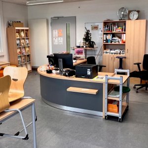 Neben den beiden Erwachsenen gibt es ein sogenanntes Mediatheksteam. Das besteht aus Schüler*innen, die freiwellig in den Pausen helfen die Bücher und DVDs zu verräumen. Je nachdem in welcher Klasse man ist, darf man auch am Computer arbeiten und die Bücher ausleihen und zurückgeben. Aktuell umfasst das Mediatheksteam um die 15 Schüler*innen. Das Mediatheksteam macht meistens einmal im Monat eine Teamsitzung. In dieser Teamsitzung bespricht das Team dann aktuelle Themen.