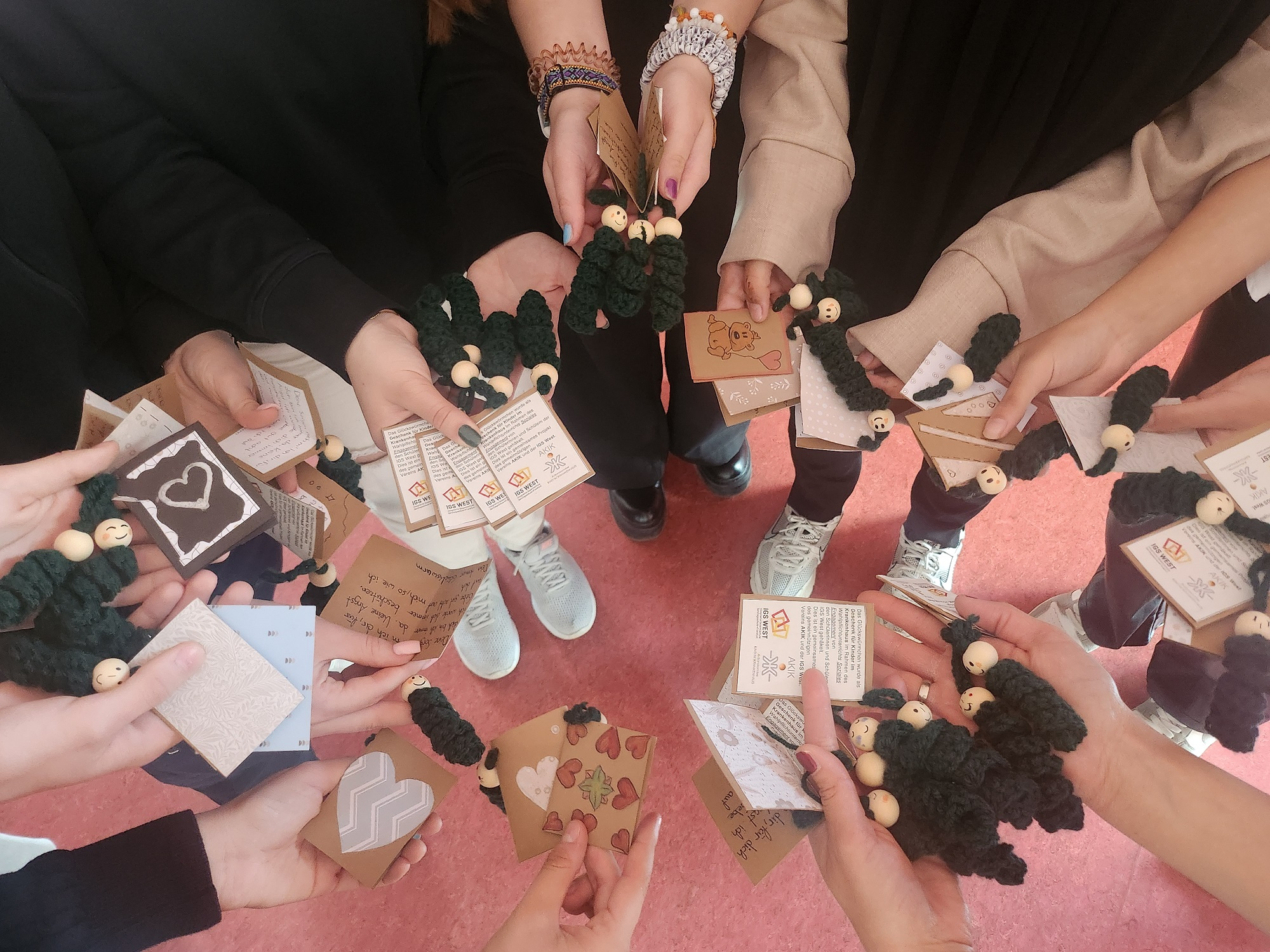 Die Schülerinnen und Schüler des "Wahlpflichtunterrichts Soziales Engagement" häkelten Glückswürmchen, die Kindern im Krankenhaus Trost spenden und ihnen eine Freude machen sollen.