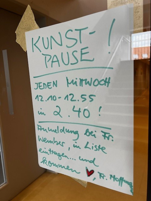 In der zweiten Hälfte des 2. Schuljahres wurden den Schülerinnen und Schülern zusätzlich zur "stillen Pause", "Oase", "Bewegungspause" in der Turnhalle nun auch die "kreative Pause" angeboten.