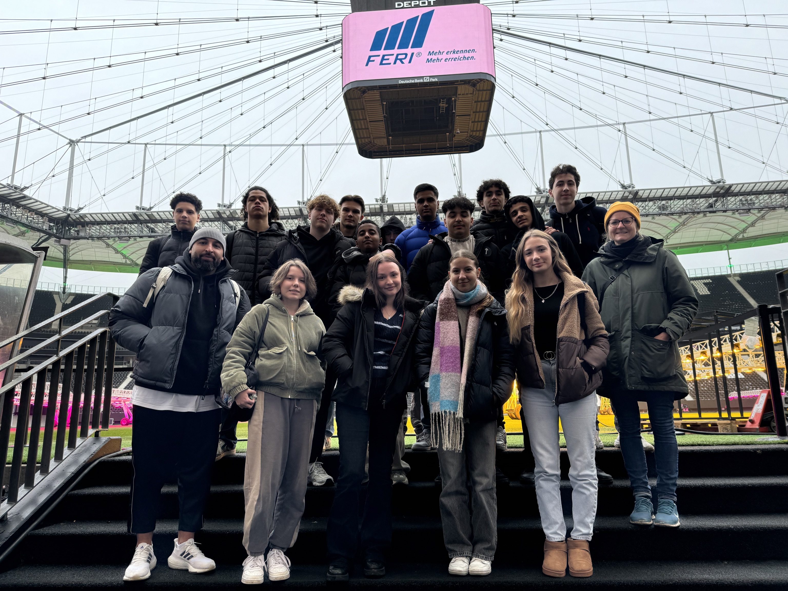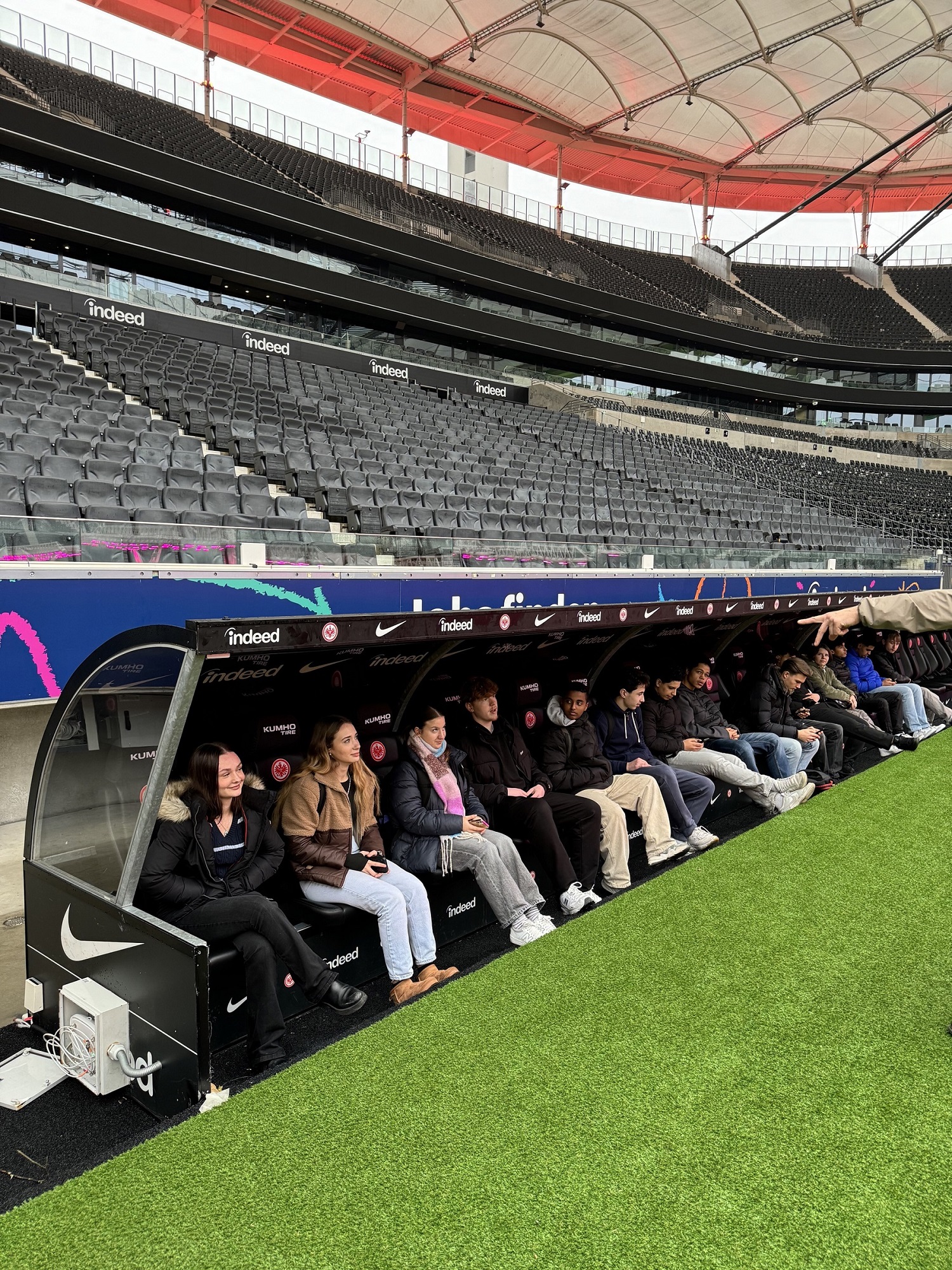 Im Rahmen unserer Unterrichtseinheit „Vereine in und um Frankfurt am Main“ hatten wir die besondere Gelegenheit, den Traditionsclub Eintracht Frankfurt näher kennenzulernen. Zusammen mit unserem Lehrer Herrn Belabidia besuchten wir am 14.11. die Deutsche Bank Arena.