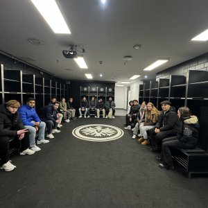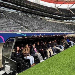 Im Anschluss folgte der Höhepunkt unseres Besuchs: eine exklusive Stadionführung. Wir durften die Spielerkabinen betreten, auf den Rasen gehen und sogar auf der Trainerbank Platz nehmen.
