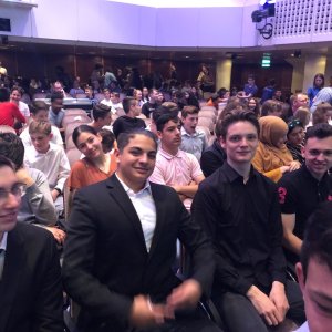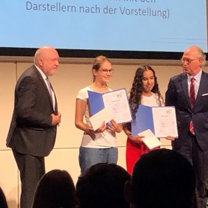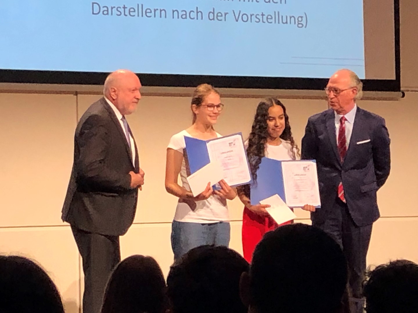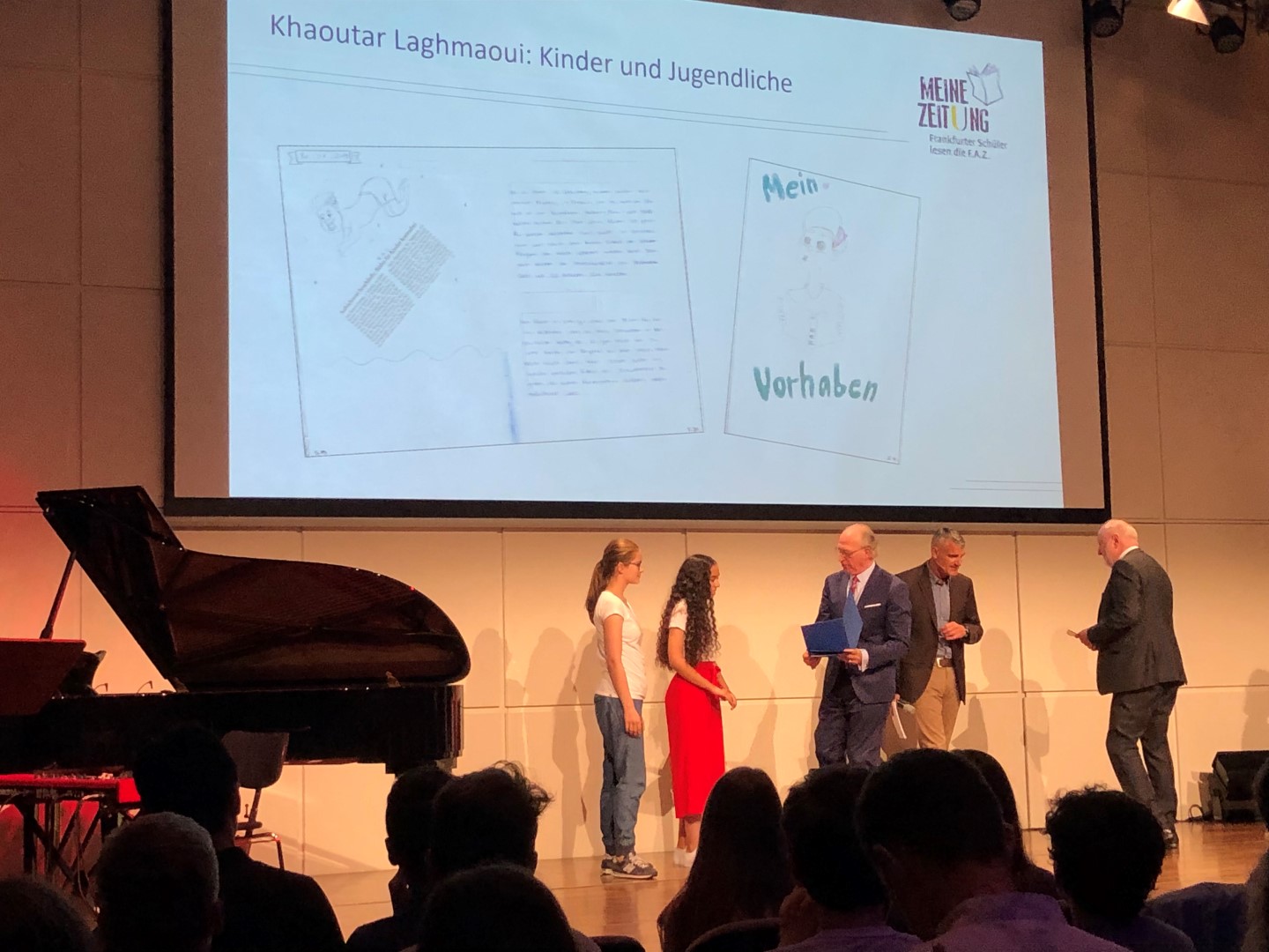 Bei einer festlichen Veranstaltung wurden wir von der F. A. Z. in die Alte Oper eingeladen. Wir haben uns alle schick gemacht und waren sehr aufgeregt, als unser Film gezeigt wurde und wir die Preise entgegennehmen durften.