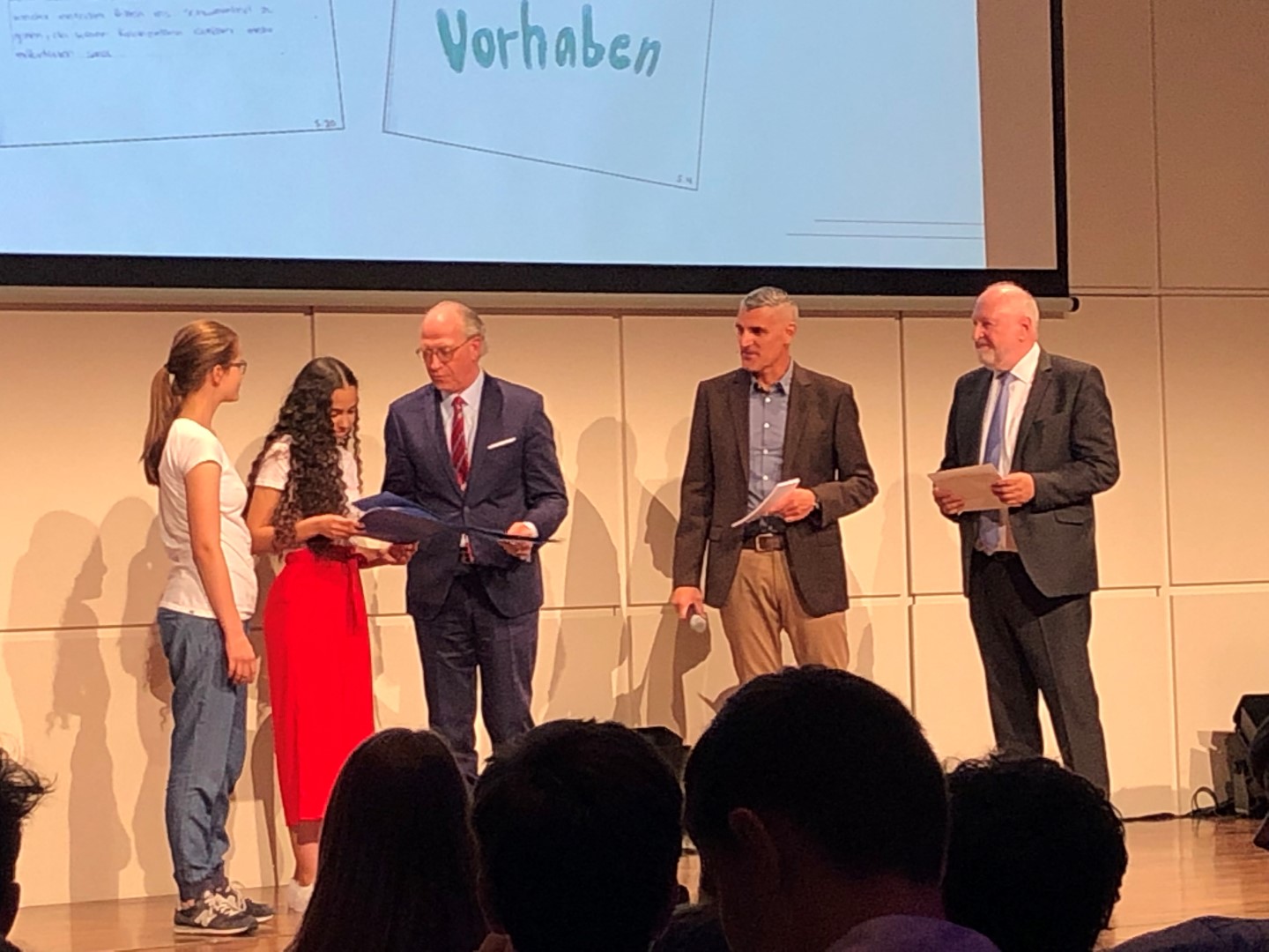 Am Ende unseres Projekts hat unsere Lehrerin Frau Cho die besten Projektmappen eingeschickt und tatsächlich: Eine unserer Schülerinnen Kaoutar aus der 9a hat den 2. Preis für die beste Projektmappe gewonnen! Wir sind mächtig stolz sie!