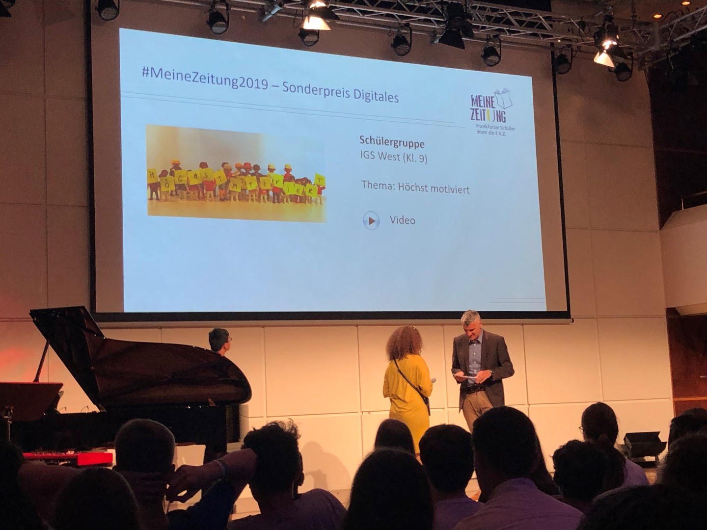 Wir haben mit mehr als 900 SchülerInnen aus 33 Klassen aus dem Raum Frankfurt am Zeitungsprojekt teilgenommen und haben sogar zwei Preise gewonnen!