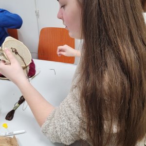 Als wir bei “Höchst Kreativ” waren, war mein Workshop “Upcycling”. Bei diesem Workshop müssen wir aus alter Kleidung etwas Neues machen. Da habe ich aus zwei verschiedenen Stoffen eine kleine Tasche gemacht. Zuerst habe ich auf ein rosa T-Shirt ein Herz und eine Kobra gestickt. Dann habe ich eine Außentasche und eine Innentasche genäht. Nachdem ich die Außentasche und Innentasche gemacht habe, habe ich die beiden zusammengenäht.