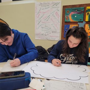 Dabei war der erste und wichtigste Schritt, unsere eigenen Figuren zu entwerfen. Wir haben gelernt, wie man Emotionen bei Figuren ausdrückt, dass dafür die Augenbrauen und der Mund wichtig sind. Nachdem unsere Figuren fertig waren, ging es darum, eine spannende Handlung zu entwickeln. Wir haben uns Geschichten ausgedacht, die zu unseren Charakteren passen, in unserem Fall war es Pokémon. Der nächste Schritt war, das Layout unseres Comics: Wir haben die Seitenaufteilung geplant, Dialoge geschrieben und entschieden, wie wir Bewegungen am besten darstellen können.