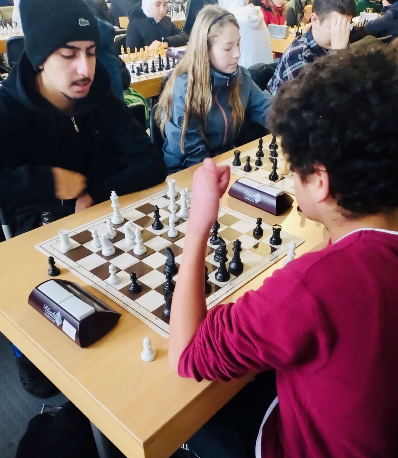 700 Schachspieler/- innen nebst 1700 regulären Schülern unterzubringen, so lapidar lässt sich das ambitionierte Unterfangen beschreiben, dem sich die aus allen Nähten platzende Kurt-Schumacher-Schule in Karben um Konrektor sowie Landesschulschachreferent Simon Claus am 30. November 2023 beim hessischen Schulschachpokal stellte. Damit sollte nicht nur in quantitativer Hinsicht das Vor-Corona-Niveau übertroffen werden, auch qualitativ musste die diesjährige 18-köpfige Delegation der IGS-West sich starker Konkurrenz stellen.