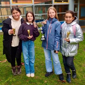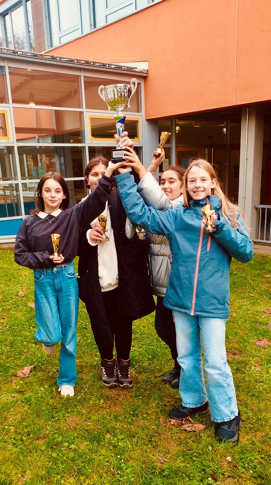 Erstmals in der 15-jährigen Geschichte der IGS-West nahmen die Frankfurter weiterhin an dem parallel stattfindenden Mädchenturnier teil, das offen für alle Stufen bis Geburtsjahrgang 2003 war. Die Premiere sollte sich mit dem sechsten von elf Rängen in der Gesamttabelle durchaus glücken. Dass aber seitens der Turnierleitung kurzerhand eine Unterkategorie U14 ins Leben gerufen worden war, bei der die Auswahl um Eva Togni (6A), Sofia Hartmann (6B), Mia Neugebauer (7A) und Buket Küren (6A) den dritten Platz belegt haben soll, das war den verdutzten Begleitern Tatjana Guvernator sowie Christopher Overbeck entgangen, dafür die Überraschung bei der Siegerehrung nebst Pokalübergabe umso größer. Ein großes Lob geht wie immer an die Turnierleitung sowie dem Catering vor Ort, das keine Wünsche übrig ließ.