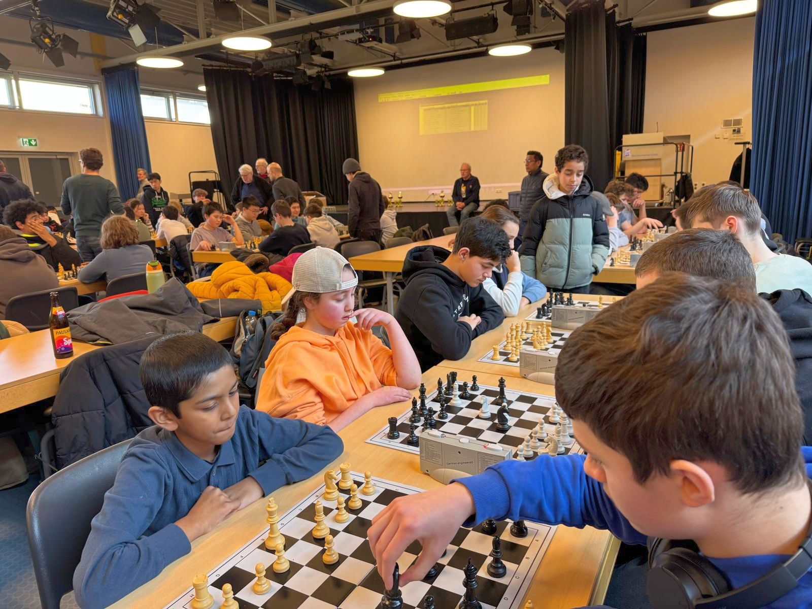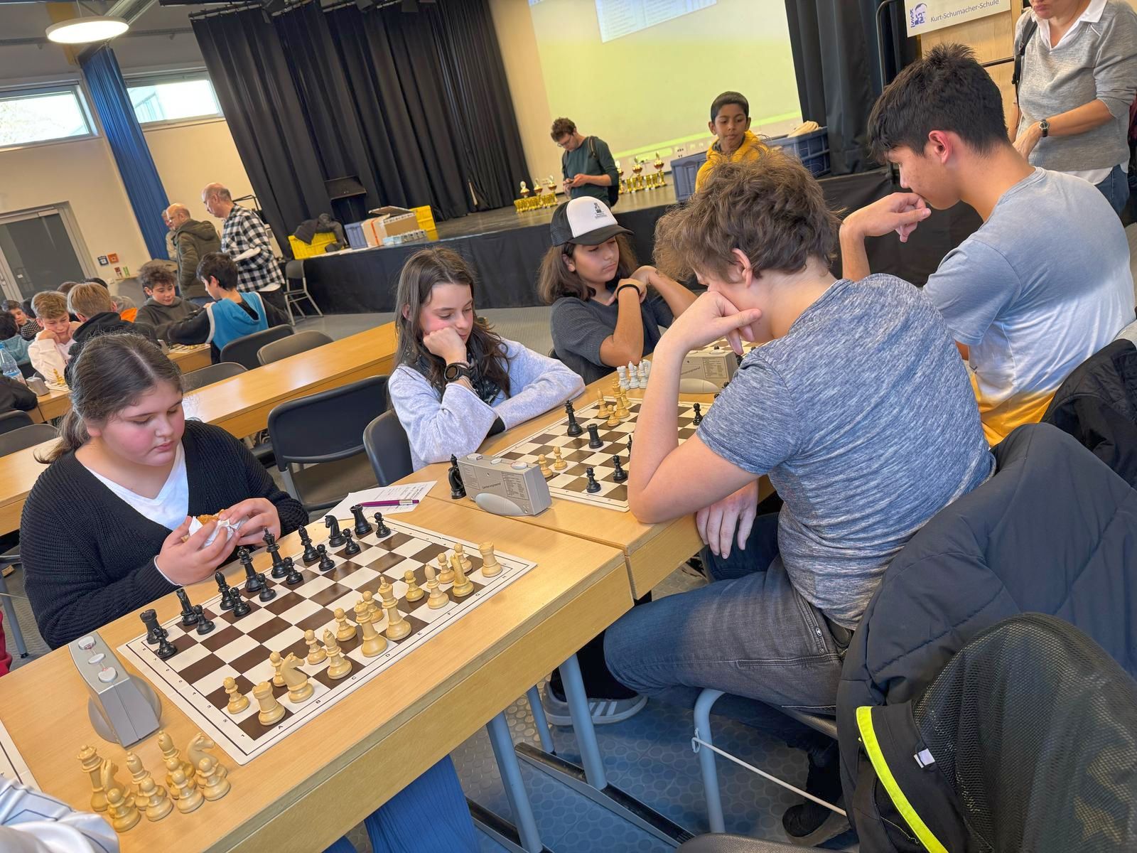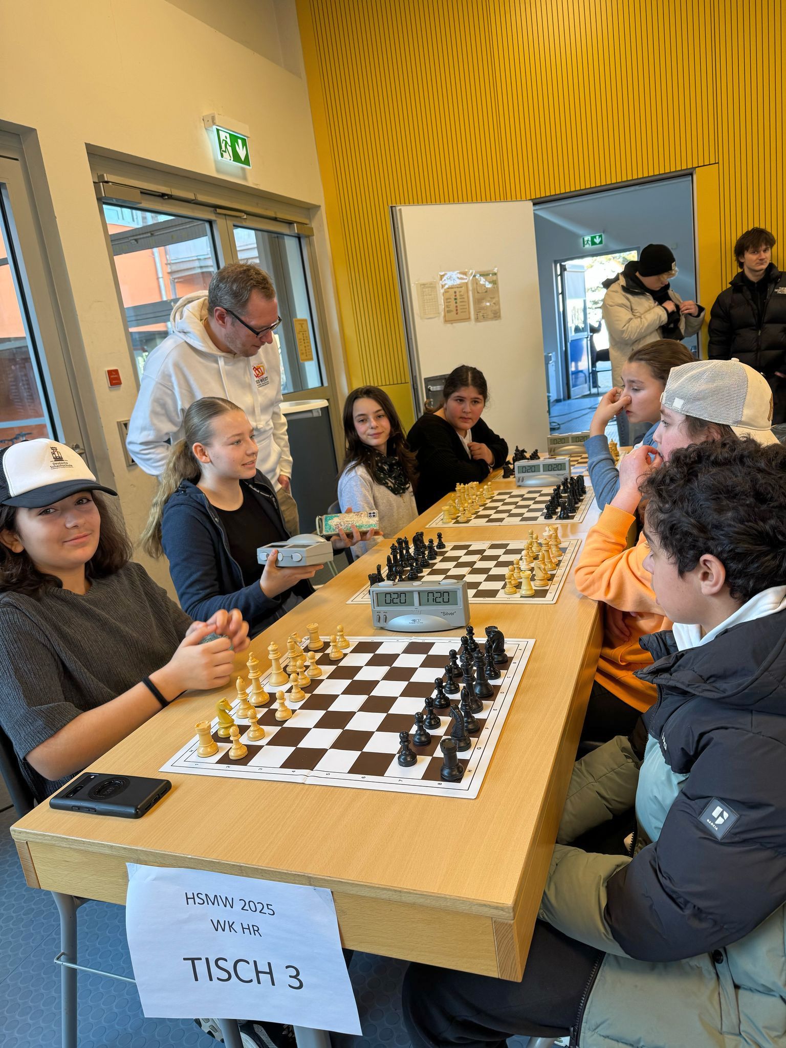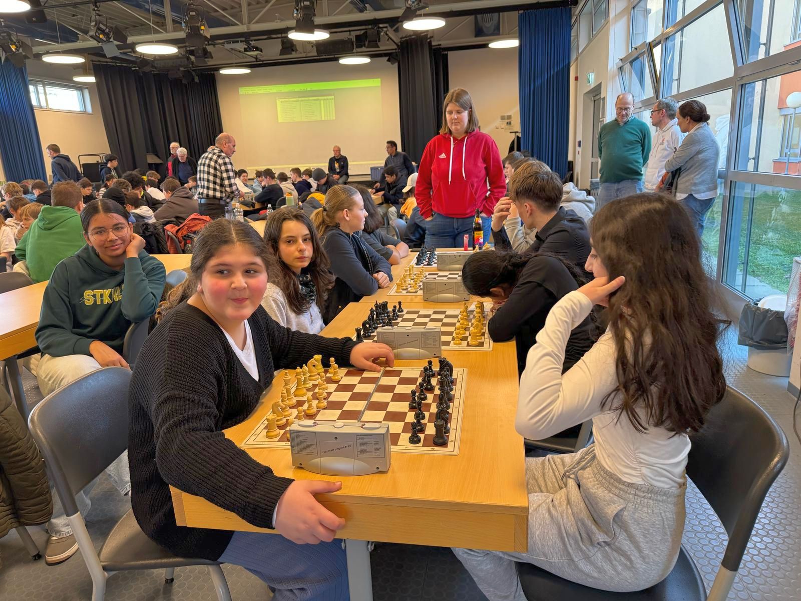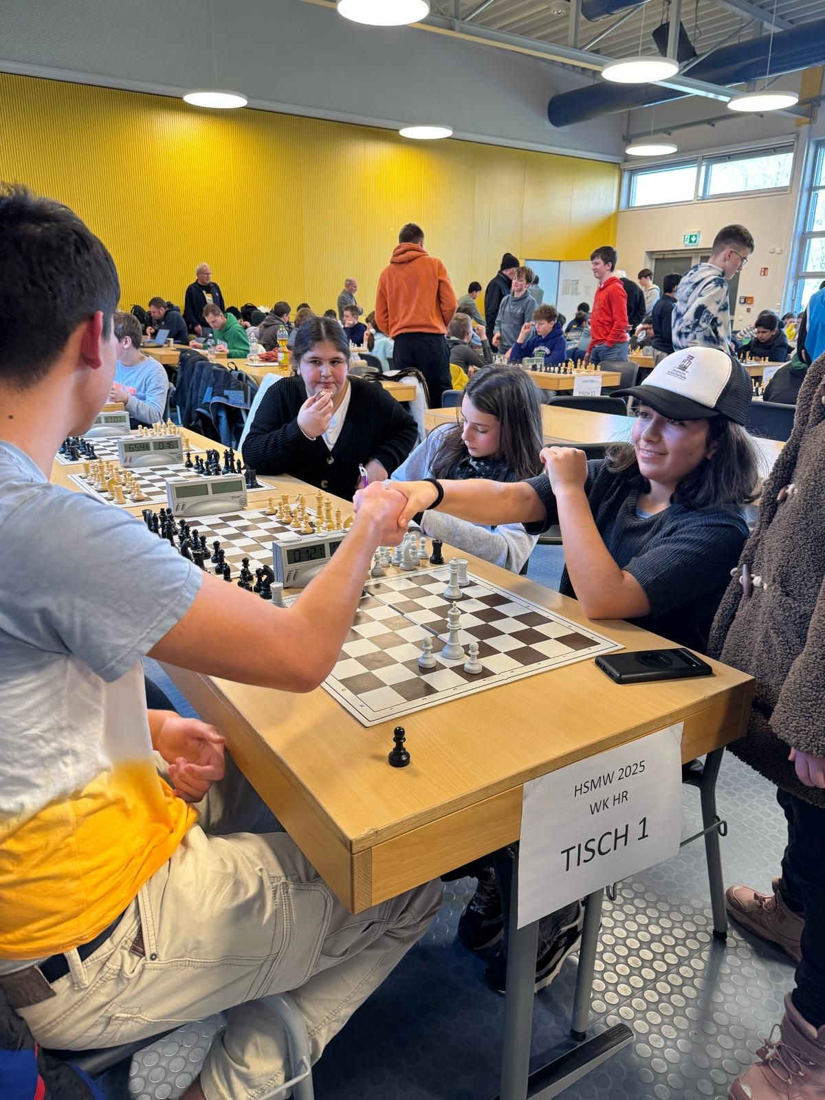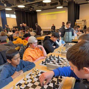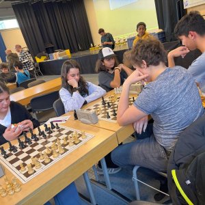 Am Dienstag, dem 18.02.2025, nahm die IGS-West mit zwei Teams am Hessischen Schulschachmannschaftswettbewerb in Karben teil. Das erste Mal nahmen mehr Mädchen als Jungen teil (7 Mädchen und 4 Jungs). Wir wurden begleitet von Rejane Stuntebeck und Christopher Overbeck. Leider ging es nicht immer fair zu, und unsere Gegner haben sich in die laufenden Partien eingemischt. Am Ende haben wir den sechsten und siebten Platz belegt. Aber da wir uns viel Mühe gegeben haben, durften wir beim Burger King was essen. Beim nächsten Mal klappt das hoffentlich besser!