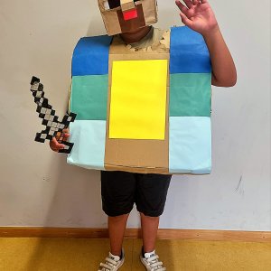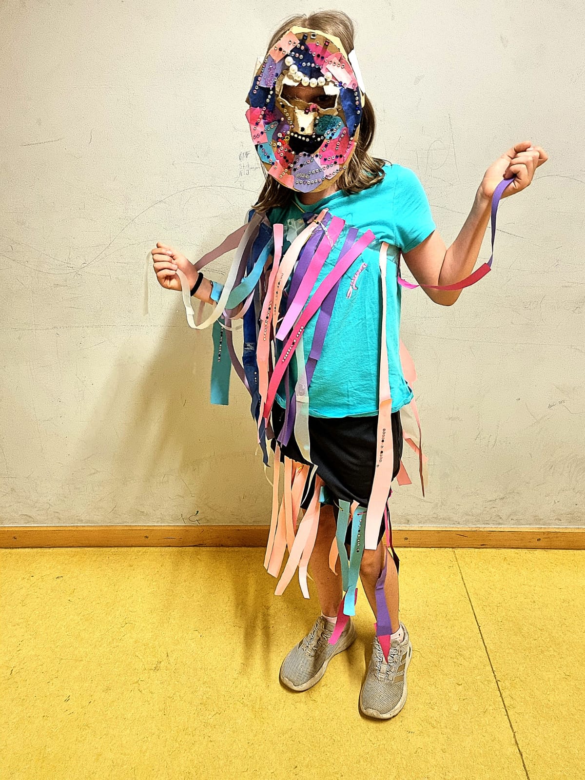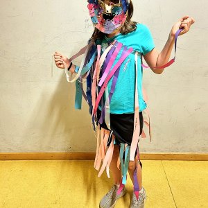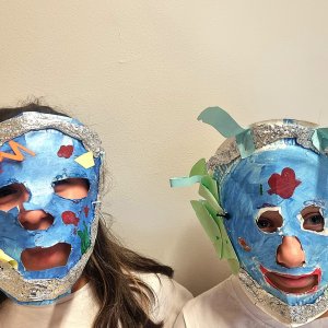 Schüler der Jahrgangsstufe 5 hatten im Fach "Ästhetische Bildung" die Aufgabe für eine selbstentwickelte Theaterszene mit Masken und Kostüme herzustellen.