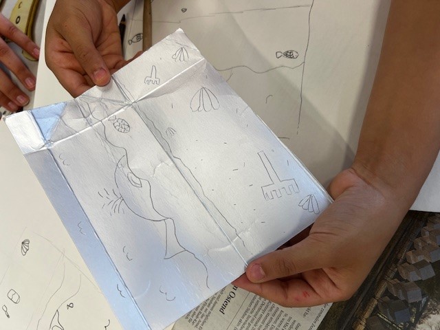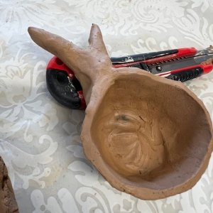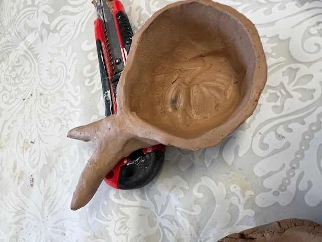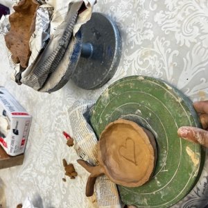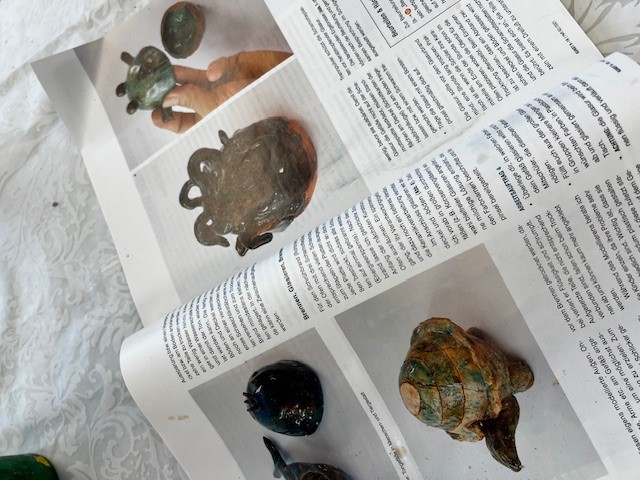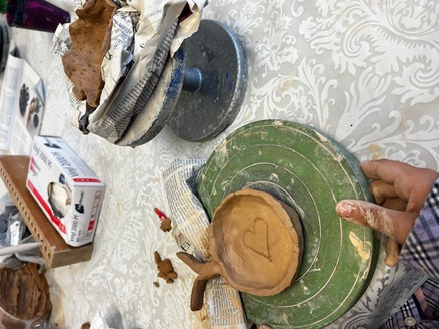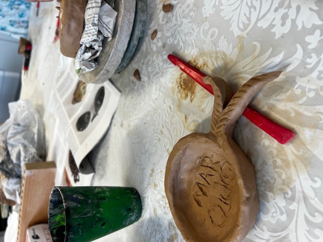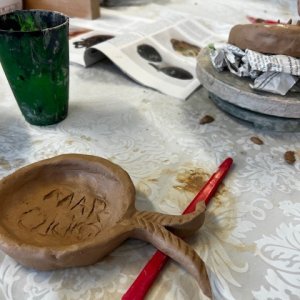 Mit Frau Hoffmann wurden Vordrucke für Karten hergestellt, verschiedene Tongefäße und Sachen aus Pappmasché.