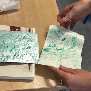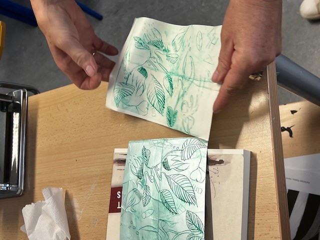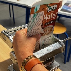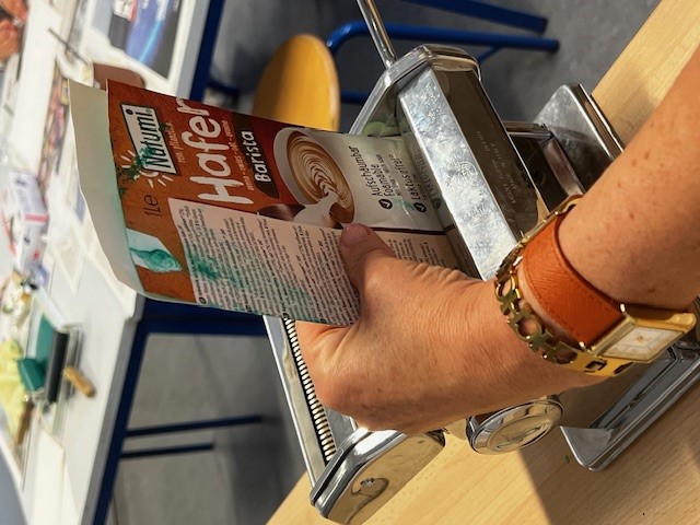In der großen Mittagspause von 12.00 Uhr bis 13.00 Uhr wurden verschiedene Techniken ausprobiert, um eigens hergestellte Produkte zu gestalten.