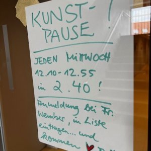 In der zweiten Hälfte des 2. Schuljahres wurden den Schülerinnen und Schülern zusätzlich zur "stillen Pause", "Oase", "Bewegungspause" in der Turnhalle nun auch die "kreative Pause" angeboten.