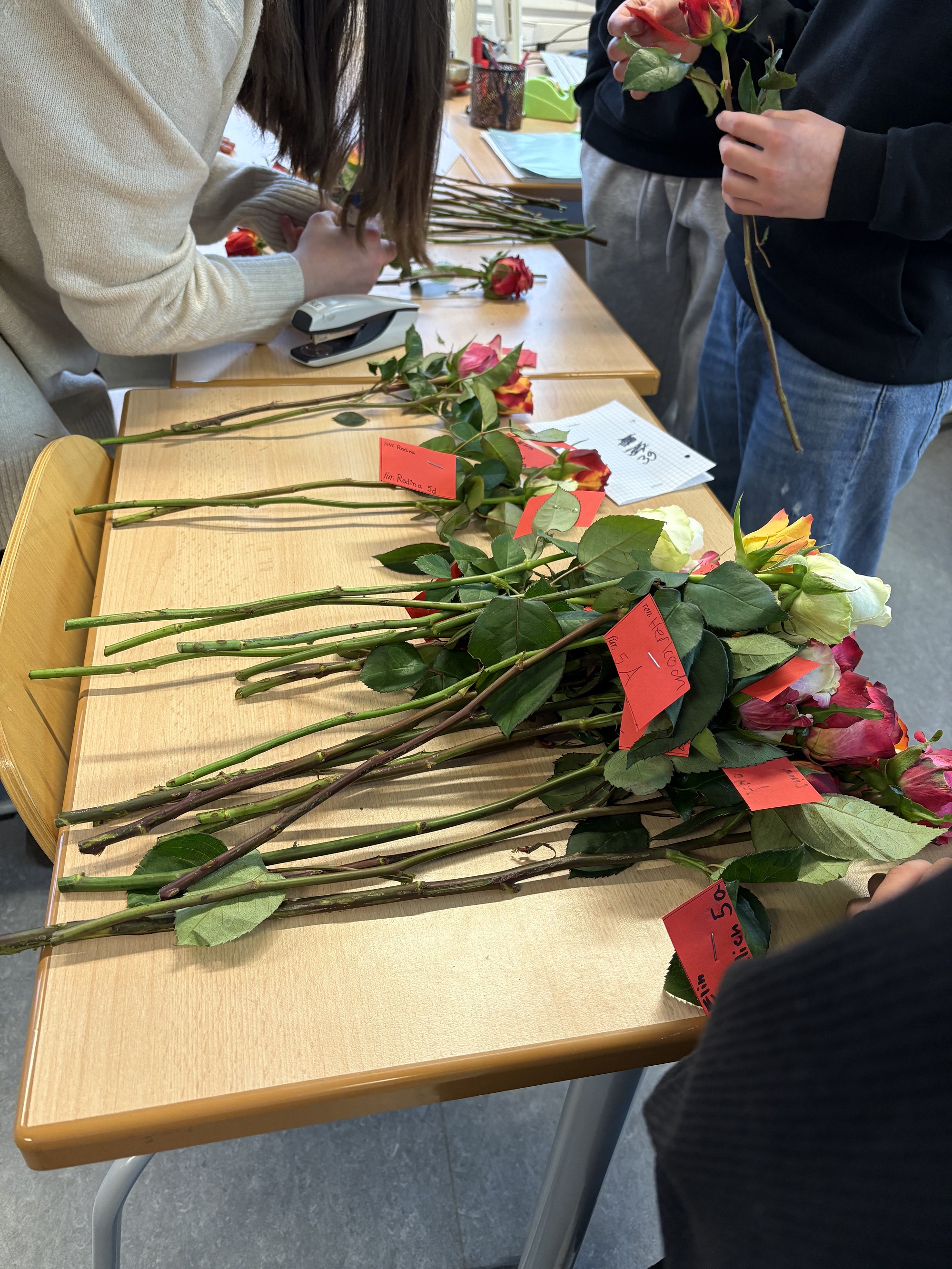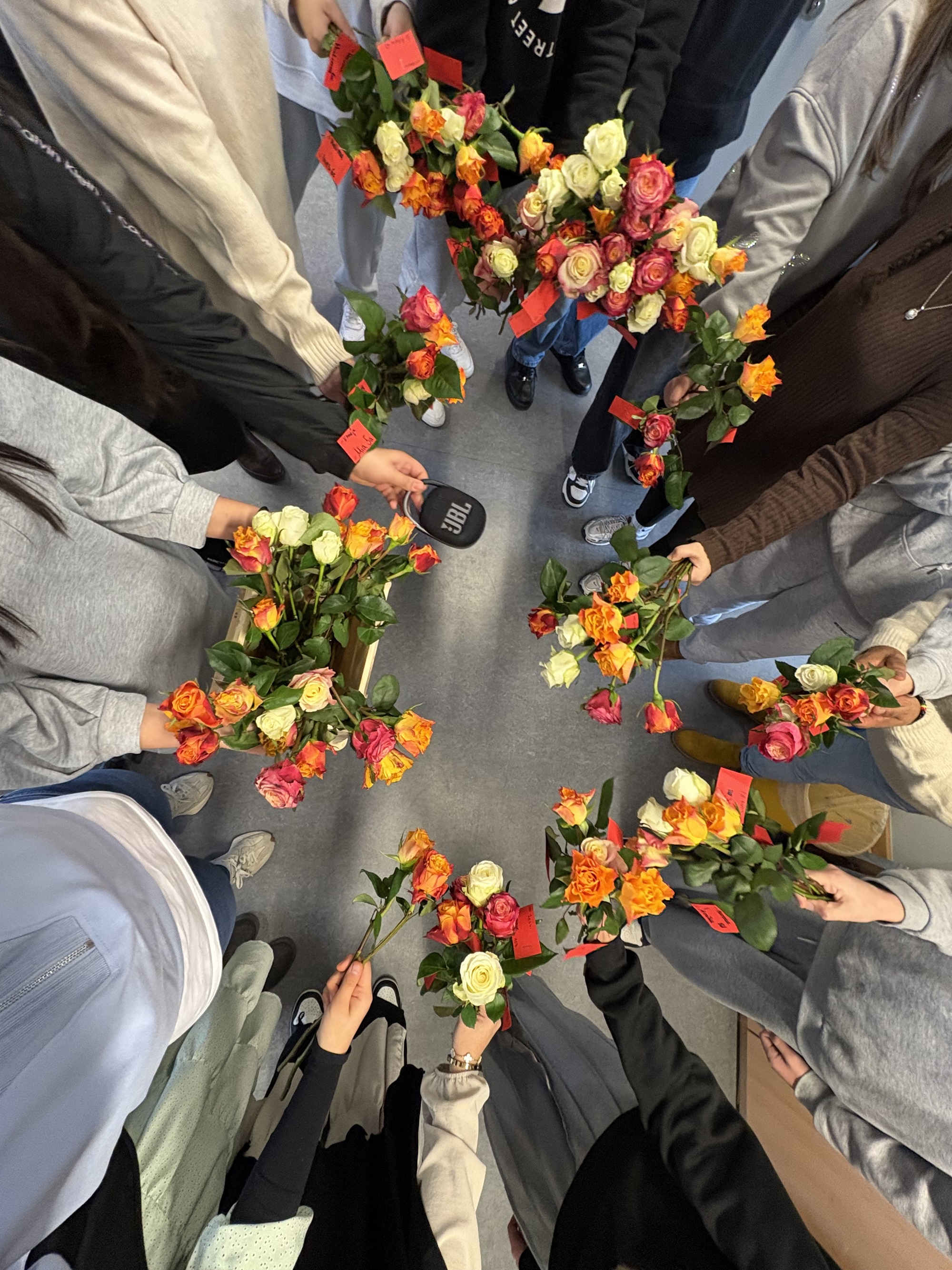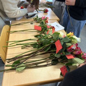 Auch dieses Jahr fand wieder der alljährliche Rosenverkauf an der IGS West statt. Der WPU-Kurs Eventmanagement 7/8 hat vom 03.-06.02.25 die Bestellungen der Schülerinnen und Schüler aufgenommen und am Valentinstag an die Schülerinnen und Schüler verteilt. Insgesamt wurden 120 Rosen bestellt und verteilt. Viele Schülerinnen und Schüler haben Rosen für ihre Freundinnen und Freunde oder Familienmitglieder bestellt. Mit einer vorbereiteten Playlist und einer kleinen Musikbox in der Hand ging es am 14. Februar durch die Jahrgänge. Wir klopften an den Klassentüren und verteilten die Rosen. Die Stimmung war gut und auch sehr lustig! Alle haben sich über ihre Rosen gefreut.
