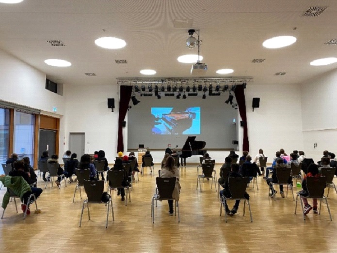 In insgesamt fünf Konzerten am 8. und 15. Dezember 2021 nahm David Andruss Schülerinnen und Schüler aller Altersklassen und ihre Lehrkräfte (natürlich unter einem angemessenem Hygieneplan) mit auf eine Reise durch mehrere Musikepochen. Die insgesamt fünf Konzerte wurden über das Programm „Löwenstark“ finanziert.