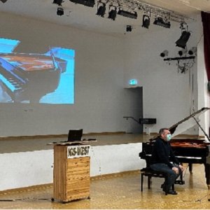 Von Bach über Mozart, Chopin, Debussy und Henry Martin brachte der Pianist David Andruss 300 Jahre Musikgeschichte in die Aula der IGS West.