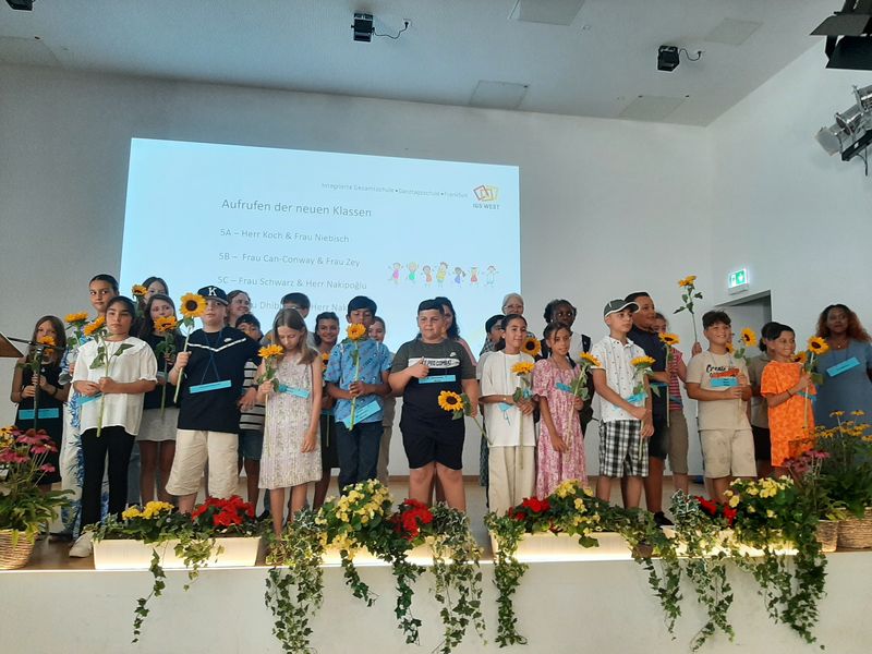 Am Dienstag, 27. August, haben wir endlich unseren neuen 5. Jahrgang begrüßen dürfen. Die 100 Schülerinnen und Schüler wurden von ihren neuen Klassenlehrkräften und der ganzen Schulgemeinde herzlich empfangen. Durch das bunte Programm der Einschulungsfeier führten Dino und Esmeralda aus der 10. Klasse; zu bewundern gab es von den älteren Schülerinnen und Schülern dargebotene Reden (Danke an 10C und 6D), Akrobatik (Danke an 6D), Gesang (Danke Alessia aus der 10A) und Rap (Danke Ali aus der 6D).