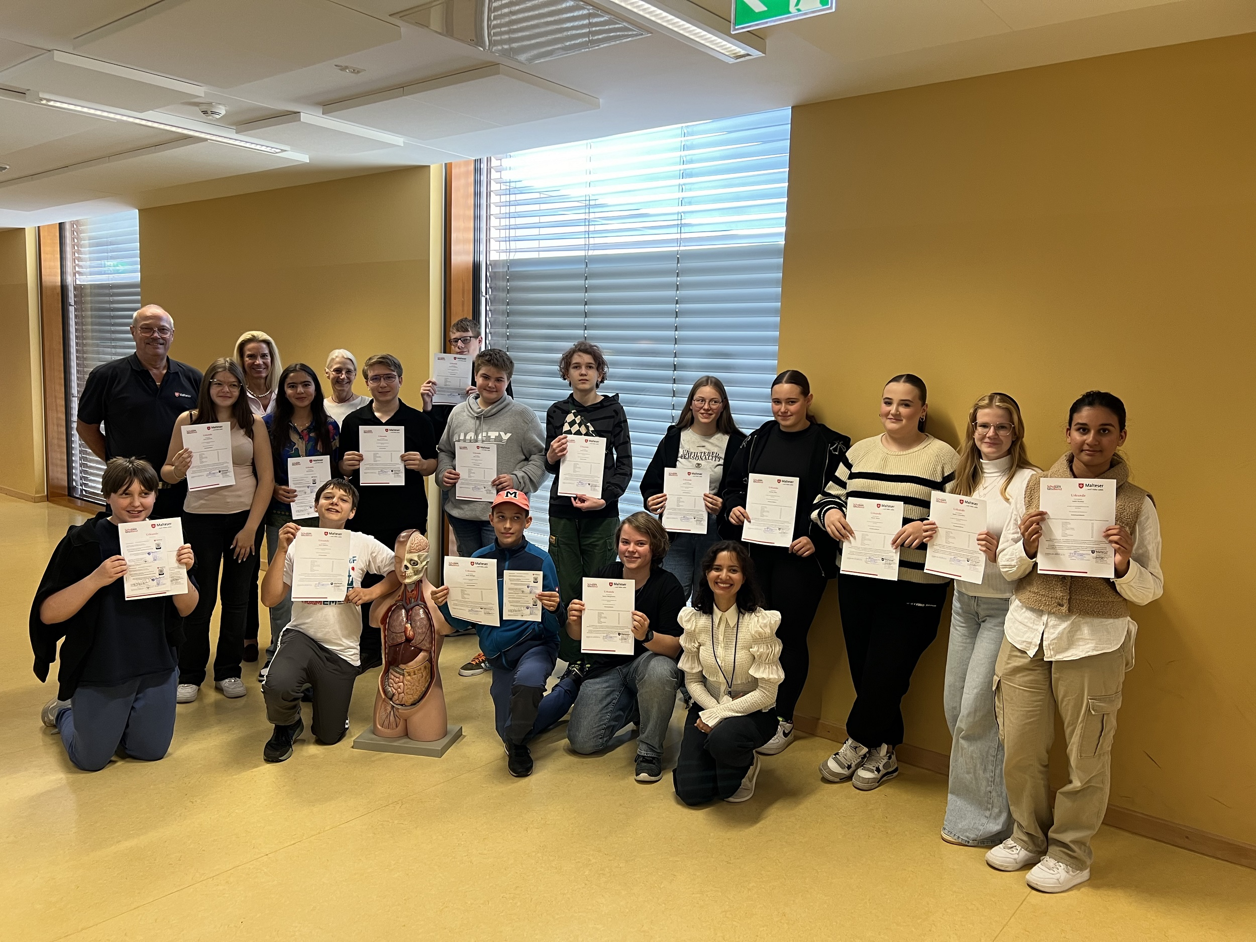Seitdem Schuljahr 2024/2025 freut sich die IGS West über neu ausgebildete Schulsanitäterinnen und Schulsanitäter. Nach einer intensiven und lehrreichen Ausbildungswoche, die professionell durch die Malteser unterstützt wurde, konnten unsere Schülerinnen und Schüler sowohl die theoretische als auch die praktische Prüfung erfolgreich ablegen. Heute verfügt die IGS West über insgesamt 18 engagierte Schulsanitäterinnen und Schulsanitäter, die während den Pausen ihren Dienst antreten, um ihren Mitschülerinnen und Mitschülern im Notfall zur Seite zu stehen und bei kleineren Verletzungen zu helfen.