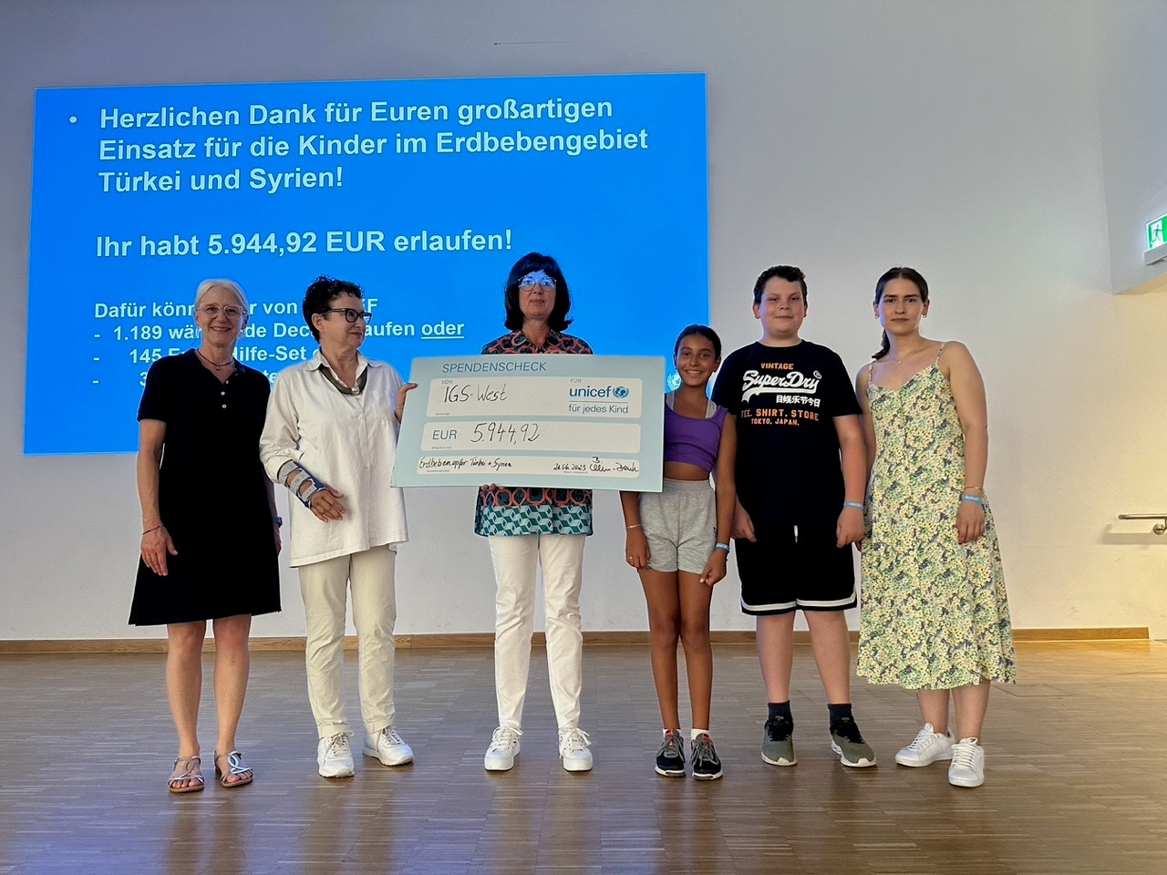 Für die Erdbebenopfer nach dem Erdbeben in der Türkei und in Syrien: Mehr als 6000€ Spendengeld an Unicef von der IGS West!