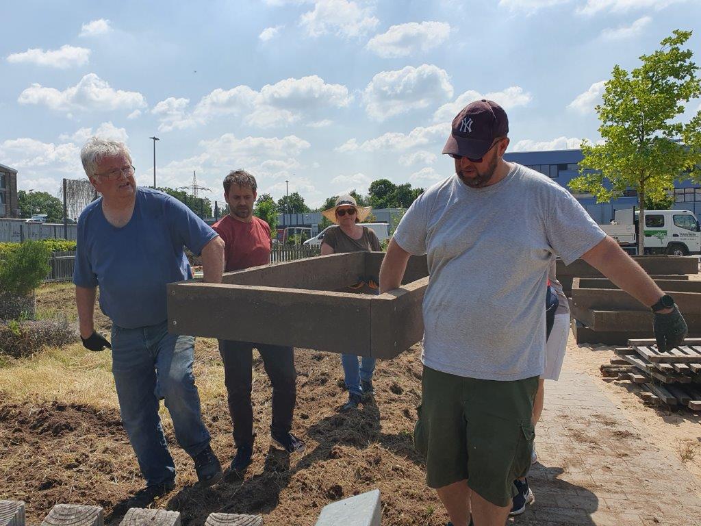 Am 24.06.2023 trafen sich auf Einladung von Herrn Preusch einer kleinen Gruppe von Schülern, Eltern und Lehrern, um den Schulgarten zu bearbeiten.