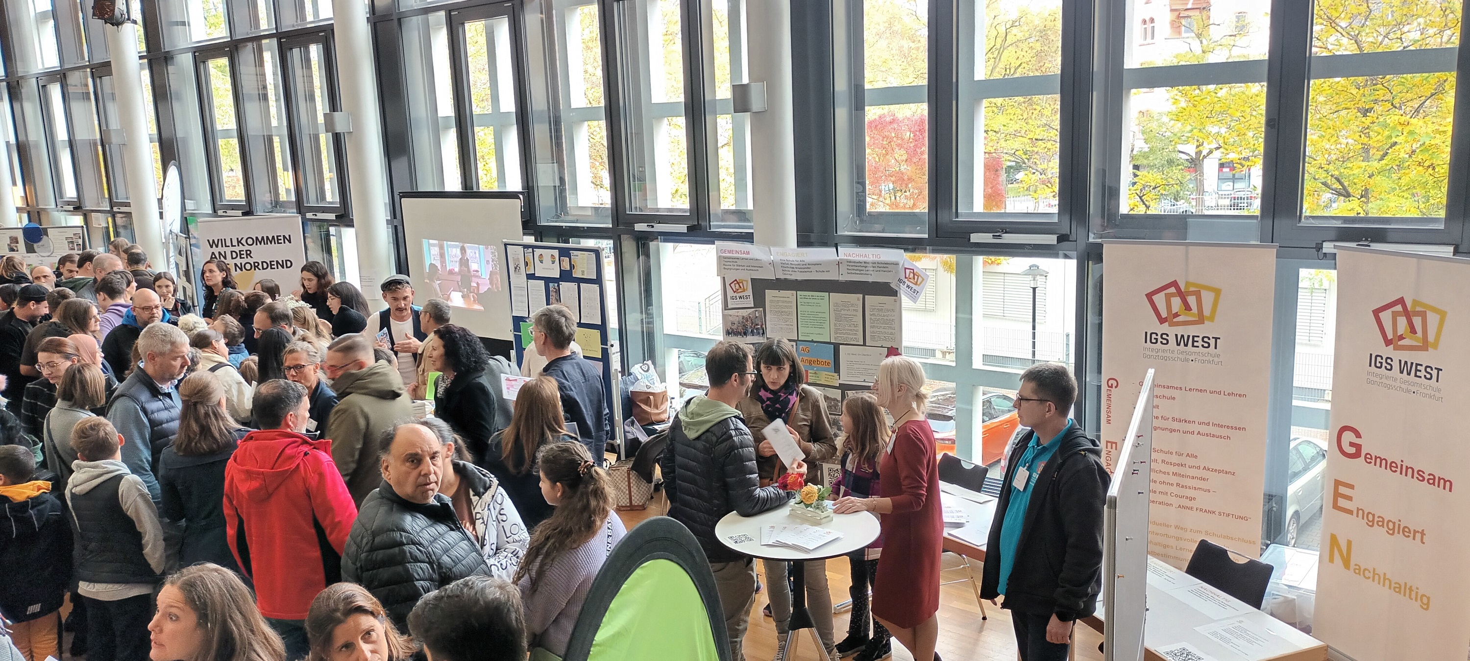 Am 04.11.2023 haben wir uns mit allen Frankfurter Gesamtschulen am Markt der Möglichkeiten im Saalbau Gallus interessierten Eltern vorgestellt. Wir haben uns sehr über die vielen Besucherinnen und Besucher gefreut und freuen uns Sie und euch an unserem Tag der offenen Tür am 27. Januar 2024 zu begrüßen.
